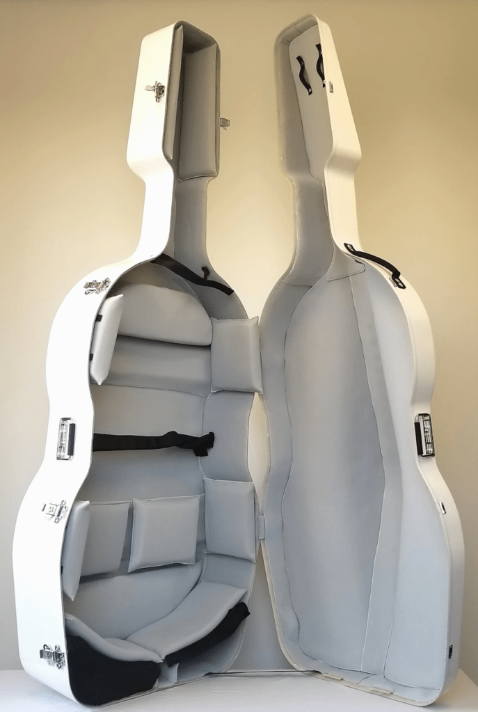 We often have a menagerie of new and gently used bass bags available at any time. From very affordable lightly padded used bags, to nicely padded custom Messina covers, measured and designed for your specific instrument, there’s a good chance we have the bass bag for you.