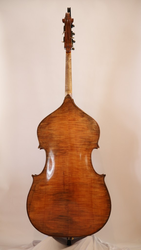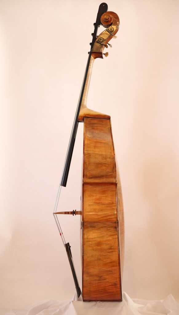 This instrument would be a great orchestral audition bass. With sloping shoulders, it is easy to get around. It has a well flamed maple back and ribs, and a fully chromatic C-extension. This bass is attributed as Germanic circa 1920 and includes a label of “Natale Carletti Bologna”. It has a clean bill of health and includes a recent appraisal from the Cincinnati Bass Cellar.