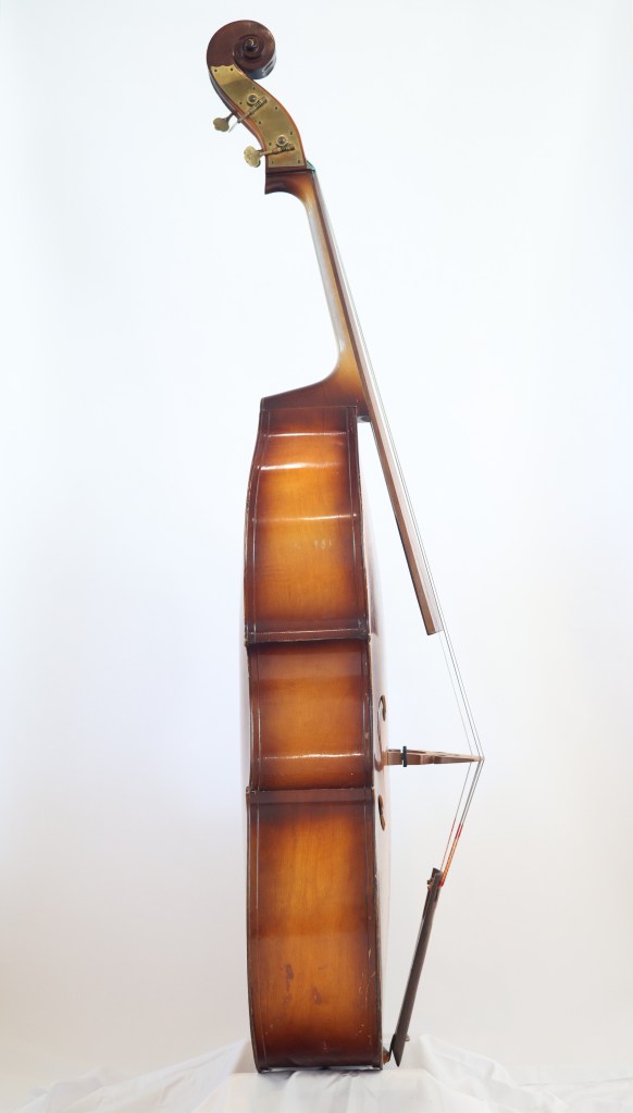 This 50’s Kay M-1 is in beautiful shape. It is currently set up with Zyex strings and has that big, boomy Kay sound. This bass features an adjustable bridge and an emblem on the tailpiece. It is ready to play bluegrass, old-time, or jazz!